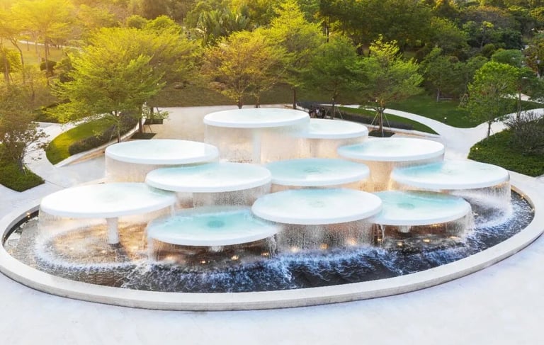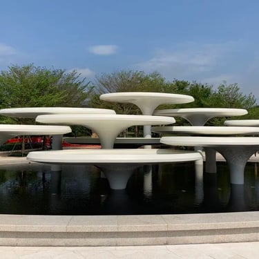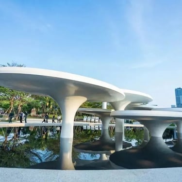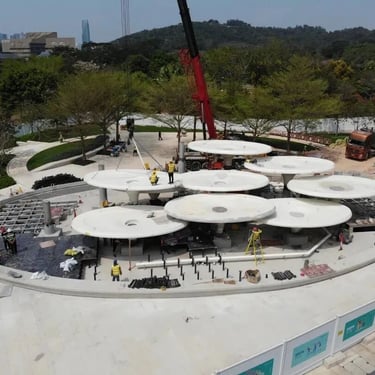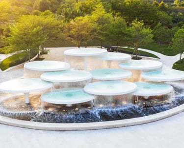 Main body of the project consists of 12 large steel-structured calla lily-shaped waterscape sculptures, each of which is 8m long and 5m wide